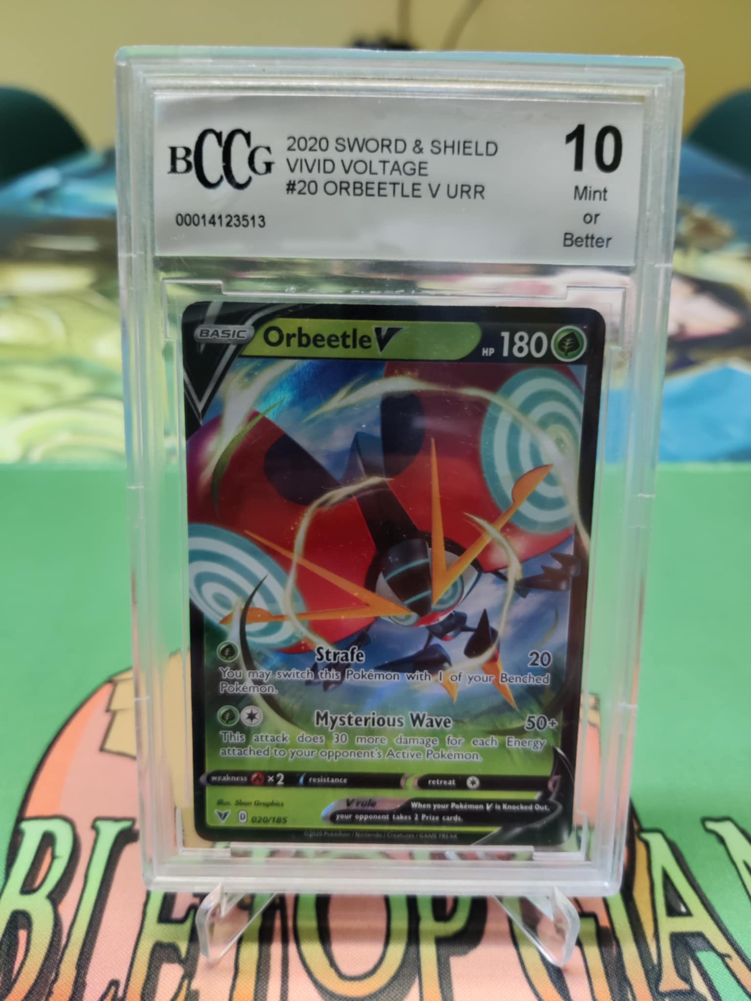 This Graded Orbeetle V card from the 2020 Sword & Shield series, rated Mint 10 by BccG, is a pristine collectible for any Pokémon enthusiast. Its flawless condition ensures maximum value and display appeal, making it a standout addition to your collection or a smart investment for the future. Don’t miss the chance to own this rare gem in perfect shape.